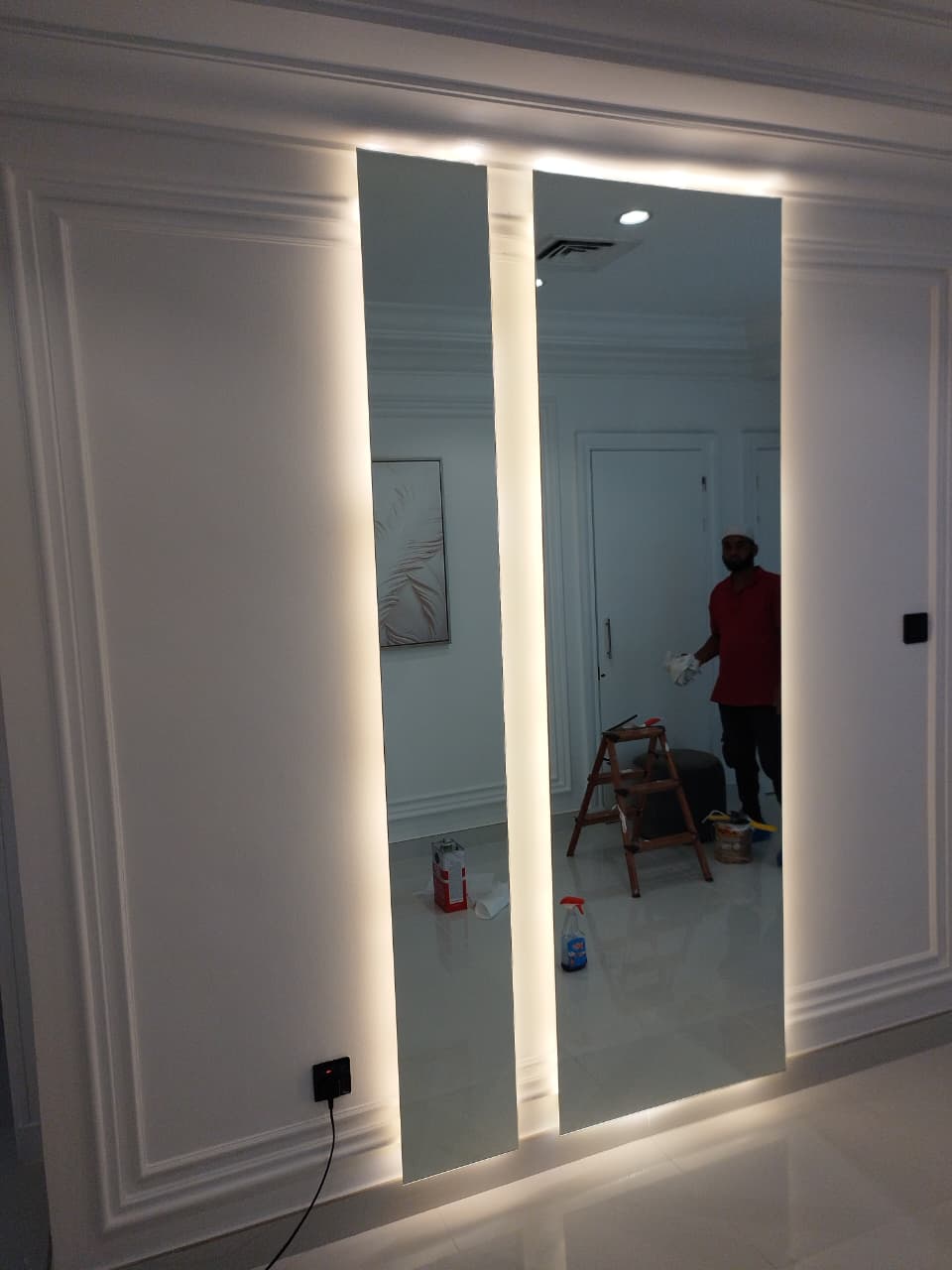 Installed a custom-made mirror with integrated LED lighting, creating an extraordinary and elegant look