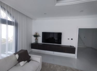 We provide quality maintenance and installation solutions for every project. Recently, we completed a customized TV unit installation with a marble bench and marble cladding, complemented by bookshelves on both sides and stylish shade lamps to create an elegant and attractive look. All electrical cables were neatly concealed, with new provisions made for HDMI connections to ensure a clean and modern finish