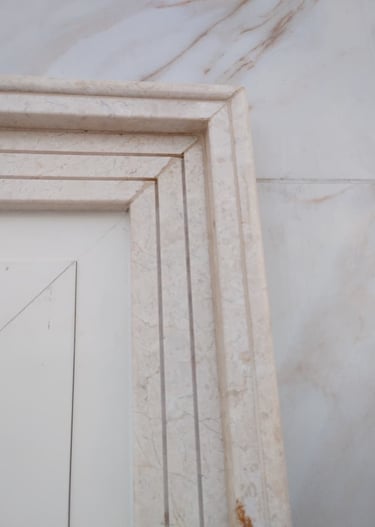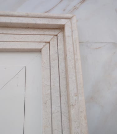 Replaced with marble architrave, creating an elegant, archival look with a royal feel.